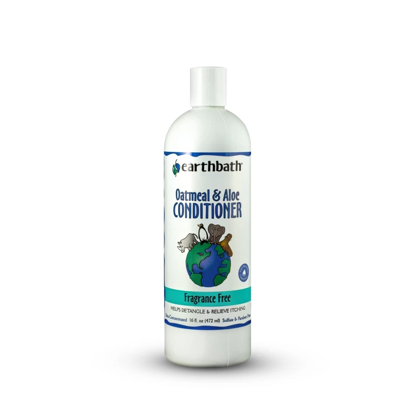 earthbath® proudly formulated this shine enhancing Fragrance Free Oatmeal & Aloe Conditioner to effectively detangle, enrich and revive your pet’s coat. The addition of colloidal oatmeal and organic aloe vera help re-moisturize and soothe itchy, dry skin. This fragrance free formula is specially blended for pets with sensitive skin and allergies. It will leave their coats soft and plush while bringing out their natural luster and brilliance. Used in conjunction with earthbath Oatmeal & Aloe Shampoo, your pet’s coat will look and feel better than ever before. Will not wash off topical flea applications. Safe for all animals over 6 weeks.