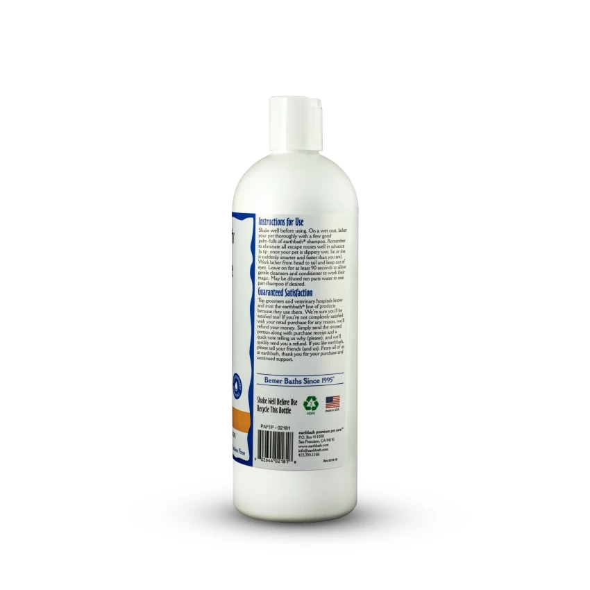 earthbath® specially formulated this Fragrance Free Oatmeal & Aloe Shampoo to address the needs of pets with dry, itchy, sensitive skin. Colloidal oatmeal and organic aloe vera are recommended by veterinarians to combat skin irritations, promote healing, and re-moisturize sensitive, dry skin. This luxurious shampoo is soap free and pH-balanced to clean and deodorize safely and thoroughly, leaving your pet’s skin and coat brilliantly clean, soft, plush, and smelling better than ever before. Will not wash off topical flea applications. Safe for all animals over 6 weeks.