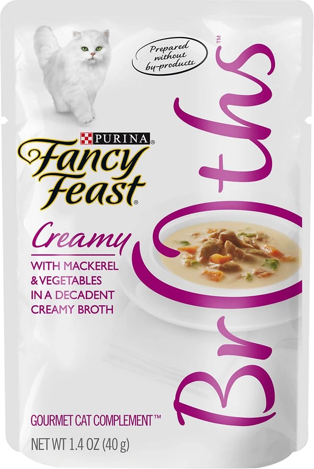 Fish Broth, Mackerel, Carrots, Fish Extract, Spinach, Milk, Modified Tapioca Starch, Added Color, Guar Gum, Xanthan Gum, Vitamin E Supplement. 424 kcal/kg