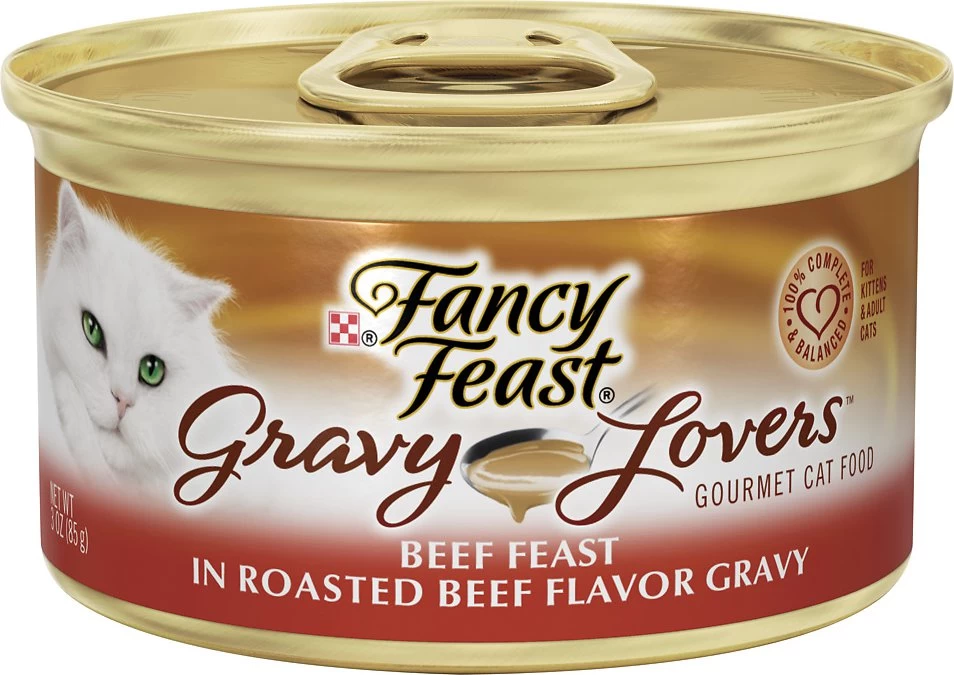 Meat Broth, Beef, Liver, Wheat Gluten, Meat By-Products, Corn Starch-Modified, Fish, Chicken, Artificial and Natural Flavors, Soy Flour, Added Color, Salt, Calcium Phosphate, Natural Roasted Beef Flavor, Potassium Chloride, Taurine, Magnesium Sulfate, Choline Chloride, Thiamine Mononitrate, Vitamin E Supplement, Zinc Sulfate, Ferrous Sulfate, Niacin, Calcium Pantothenate, Vitamin A Supplement, Copper Sulfate, Manganese Sulfate, Menadione Sodium Bisulfite Complex (Source of Vitamin K Activity), Pyridoxine Hydrochloride, Riboflavin Supplement, Vitamin B-12 Supplement, Biotin, Folic Acid, Vitamin D-3 Supplement, Potassium Iodide. 22.28 kcal/can