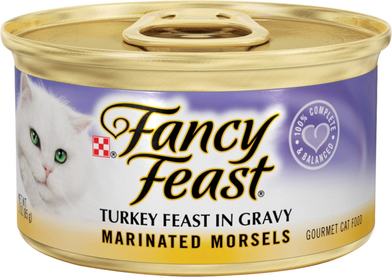 Poultry Broth, Turkey, Liver, Wheat Gluten, Meat By-Products, Corn Starch-Modified, Artificial and Natural Flavors, Soy Flour, Added Color, Tricalcium Phosphate, Salt, Potassium Chloride, Taurine, Choline Chloride, Magnesium Sulfate, Mono and Dicalcium Phosphate, Thiamine Mononitrate, Vitamin E Supplement, Zinc Sulfate, Ferrous Sulfate, Niacin, Calcium Pantothenate, Vitamin A Supplement, Menadione Sodium Bisulfite Complex (Source of Vitamin K Activity), Copper Sulfate, Manganese Sulfate, Pyridoxine Hydrochloride, Riboflavin Supplement, Vitamin B-12 Supplement, Biotin, Folic Acid, Vitamin D-3 Supplement, Potassium Iodide. B-6944. 952 kcal/kg, 81 kcal/can