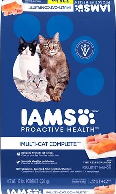 Chicken By-Product Meal, Chicken, Corn Grits, Dried Beet Pulp, Powdered Cellulose, Corn Meal, Brewers Rice, Salmon, Ground Whole Grain Sorghum, Animal Fat (Preserved with Mixed Tocopherols, a Source of Vitamin E), Natural Flavor, Dried Egg Product, Brewers Dried Yeast, Sodium Bisulfate, Potassium Chloride, Dl-Methionine, Fructooligosaccharides, Choline Chloride, Fish Oil (Preserved with Mixed Tocopherols, a Source of Vitamin E), Calcium Carbonate, Vitamin E Supplement, Vitamins (Niacin, Ascorbic Acid, Calcium Pantothenate, Biotin, Thiamine Mononitrate (Source of Vitamin B1), Pyridoxine Hydrochloride (Source of Vitamin B6), Vitamin B12 Supplement, Riboflavin Supplement (Source of Vitamin B2), Inositol, Vitamin D3 Supplement, Folic Acid), Minerals (Zinc Oxide, Manganese Sulfate, Copper Sulfate, Potassium Iodide, Cobalt Carbonate), Salt, L-Carnitine, Vitamin A Acetate, Rosemary Extract. 3,628 kcal/kg, 336 kcal/cup