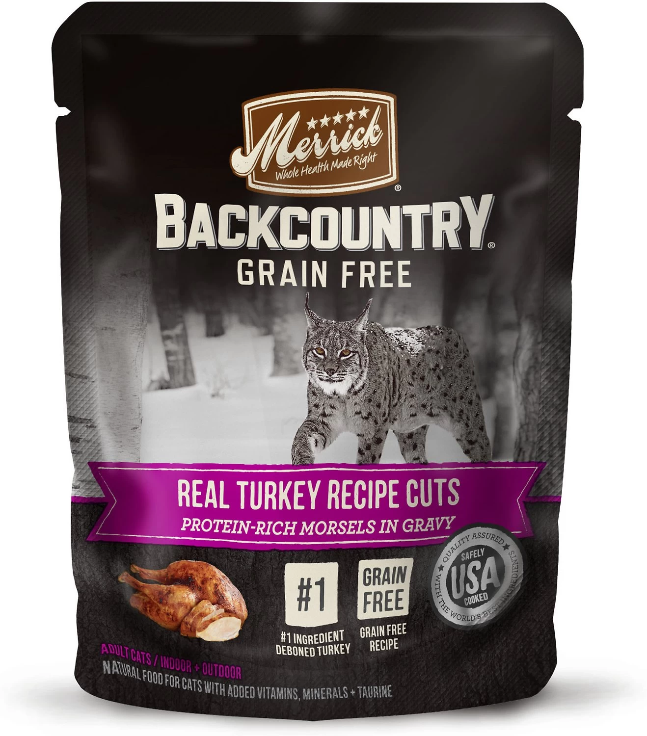 Deboned Turkey, Turkey Broth, Chicken Broth, Turkey Liver, Deboned Chicken, Dried Egg Whites, Potato Starch, Natural Flavor, Guar Gum, Sodium Phosphate, Salt, Potassium Chloride, Taurine, Salmon Oil (Preserved with Mixed Tocopherols), Choline Chloride, Minerals (Iron Amino Acid Chelate, Zinc Amino Acid Chelate, Copper Amino Acid Chelate, Manganese Amino Acid Chelate, Sodium Selenite, Potassium Iodide), Calcium Carbonate, Sodium Carbonate, Vitamins (Vitamin E Supplement, Thiamine Mononitrate, Niacin Supplement, D-Calcium Pantothenate, Pyridoxine Hydrochloride, Riboflavin Supplement, Vitamin A Supplement, Biotin, Vitamin D3 Supplement, Vitamin B12 Supplement, Folic Acid), Inulin, Rosemary Extract. 987 kcal/kg, 84 kcal/pouch