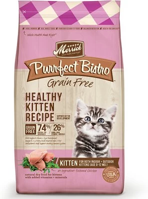 Purrfect Bistro Healthy Kitten Recipe is a grain free diet high in quality protein with moderate fat levels and low levels of carbohydrates – the kind of diet kittens thrive on. Our formula is fortified with vitamins, minerals, probiotics, and antioxidants and is ideal for kitten growth.