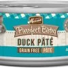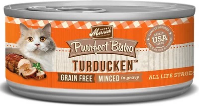 Deboned Turkey, Chicken Broth, Deboned Duck, Chicken Liver, Peas, Dried Egg Product, Natural Flavor, Dried Potato, Sweet Potato, Carrots, Cranberries, Organic Alfalfa, Calcium Carbonate, Salt, Potassium Chloride, Carrageenan, Guar Gum, Powdered Cellulose, Sodium Phosphate, Salmon Oil, Minerals (Zinc Amino Acid Complex, Iron Amino Acid Complex, Manganese Amino Acid Complex, Copper Amino Acid Complex, Potassium Iodide, Cobalt Glucoheptonate, Sodium Selenite), Vitamins (Vitamin E Supplement, Vitamin B12 Supplement, D-Calcium Pantothenate, Vitamin A Supplement, Niacin, Vitamin D3 Supplement, Riboflavin Supplement, Pyridoxine Hydrochloride, Folic Acid, Biotin, Thiamine Mononitrate), Taurine, Choline Chloride, Thyme, Sage, Rosemary, Yucca Schidigera Extract. 1,078 kcal/kg, 92 kcal/3 oz can, 170 kcal/5.5 oz can