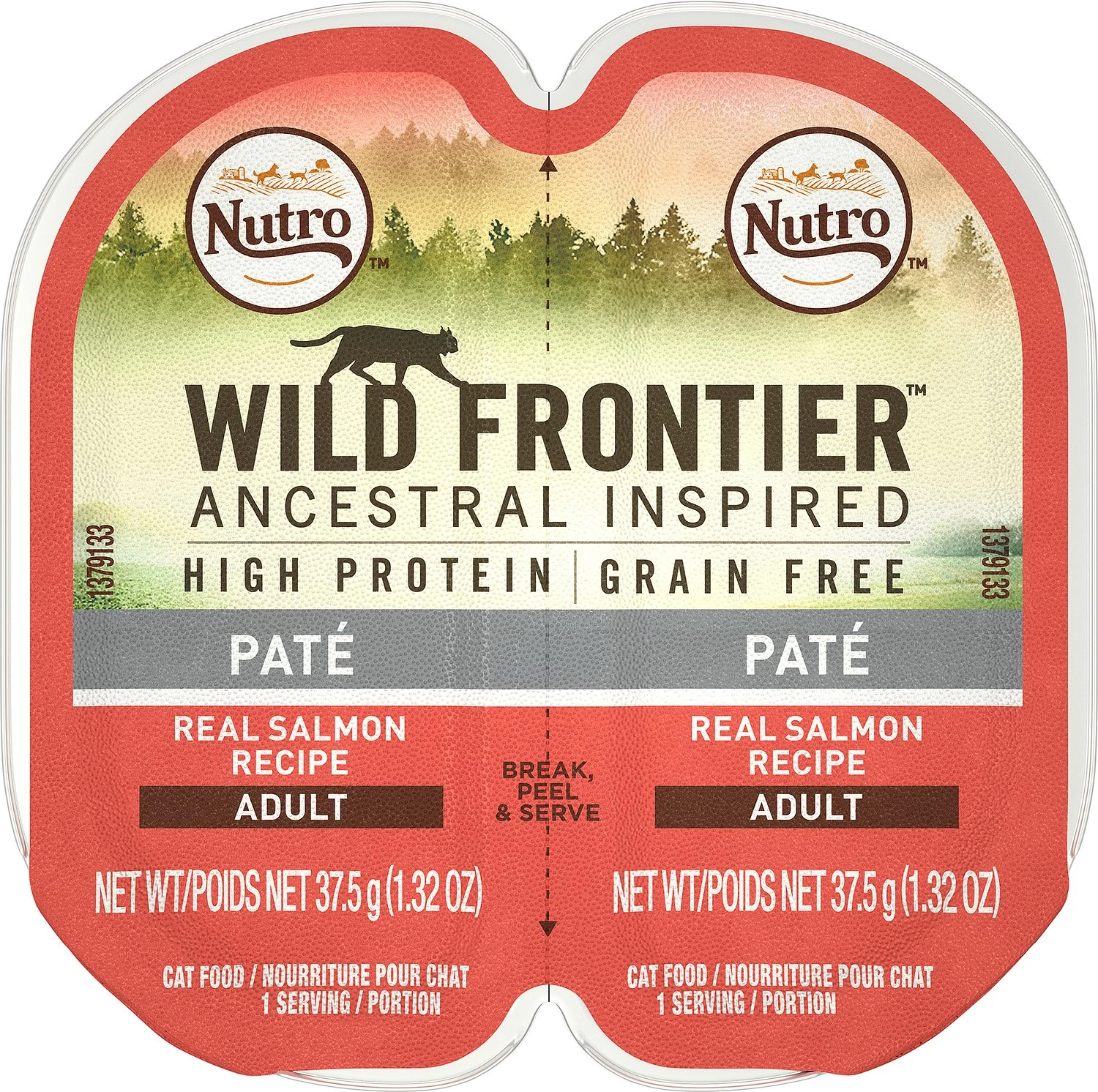 Salmon, Chicken Liver, Chicken, Pork Broth, Chicken Broth, Natural Flavor, Guar Gum, Potassium Chloride, Fish Oil (preserved with Mixed Tocopherols), Carrageenan, Sodium Acid Pyrophosphate, Magnesium Sulfate, Calcium Carbonate, Tetrasodium Pyrophosphate, Tapioca Starch, Salt, Choline Chloride, Sodium Hexametaphosphate, Taurine, Thiamine Mononitrate (Vitamin B1), Vitamin E Supplement, Zinc Sulfate, Ferrous Sulfate, Manganese Sulfate, Potassium Iodide, Pyridoxine Hydrochloride (Vitamin B6), Copper Sulfate, Vitamin D3 Supplement, Folic Acid, Menadione Sodium Bisulfite Complex (source of Vitamin K Activity). 1,033 kcal/kg, 39 kcal/serving