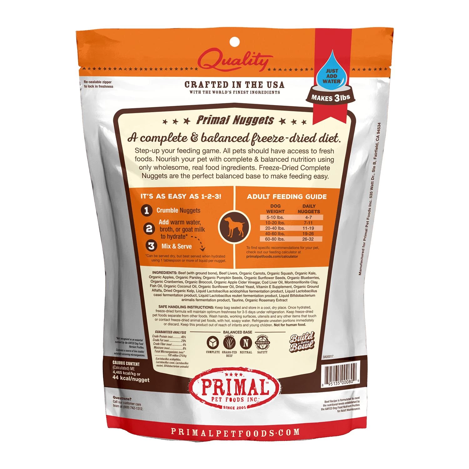 Beef Hearts, Beef Livers, Ground Beef Bones, Organic Carrots, Organic Squash, Organic Kale, Organic Apples, Organic Broccoli, Organic Pumpkin Seeds, Organic Sunflower Seeds, Organic Blueberries, Organic Cranberries, Organic Parsley, Organic Apple Cider Vinegar, Montmorillonite Clay, Fish Oil, Organic Rosemary Extract, Organic Quinoa, Organic Coconut Oil, Organic Ground Alfalfa, Vitamin E Supplement, Zinc Sulfate, Dried Organic Kelp