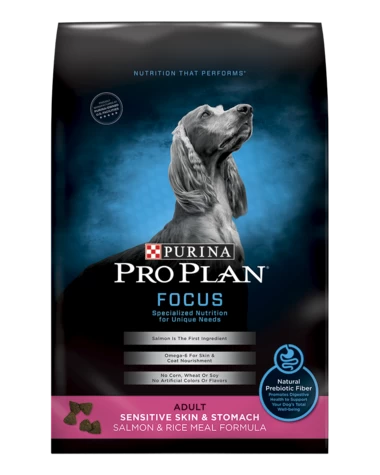 Salmon, Barley, Ground Rice, Canola Meal, Oat Meal, Fish Meal (Source of Glucosamine), Animal Fat Preserved with Mixed-Tocopherols, Brewers Dried Yeast, Salmon Meal (Source of Glucosamine), Natural Flavor, Sunflower Oil, Chicory Root Inulin, Salt, Fish Oil, Vitamins [Vitamin E Supplement, Niacin (Vitamin B-3), Vitamin A Supplement, Calcium Pantothenate (Vitamin B-5), Pyridoxine Hydrochloride (Vitamin B-6), Folic Acid (Vitamin B-9), Vitamin B-12 Supplement, Thiamine Mononitrate (Vitamin B-1), Vitamin D-3 Supplement, Riboflavin Supplement (Vitamin B-2), Menadione Sodium Bisulfite Complex (Vitamin K), Biotin (Vitamin B-7)], Potassium Chloride, Minerals [Zinc Sulfate, Ferrous Sulfate, Manganese Sulfate, Copper Sulfate, Calcium Iodate, Sodium Selenite], L-Ascorbyl-2-Polyphosphate (Vitamin C), Choline Chloride.