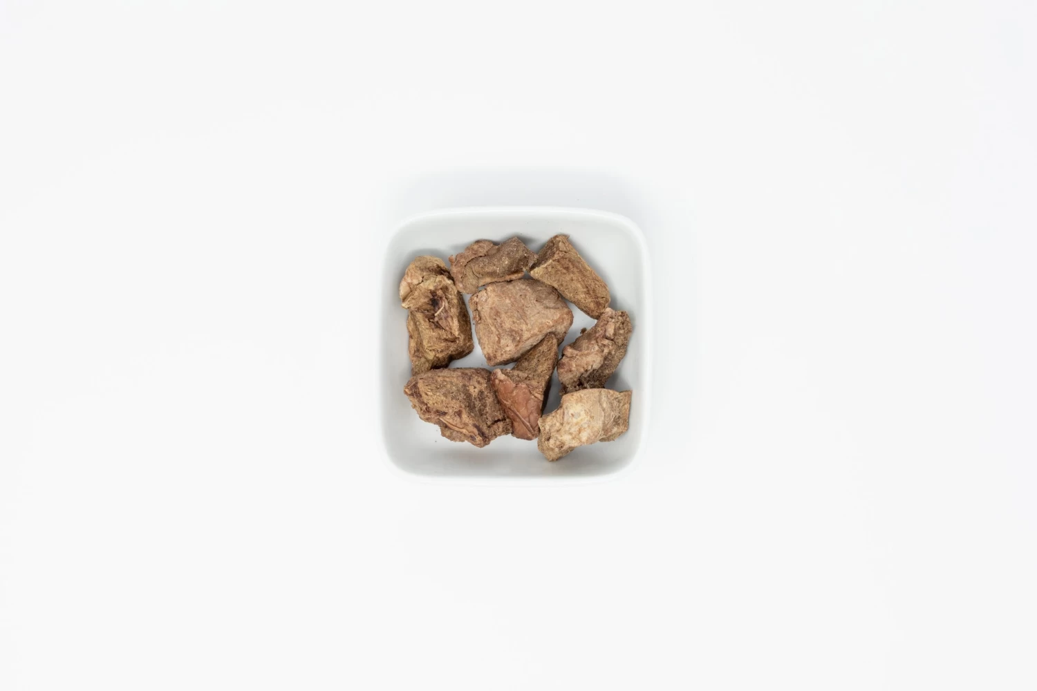 One simple ingredient: 100% pure freeze-dried raw beef heart. Made in the USA. A natural, healthy, high-value treat that dogs cannot resist!
