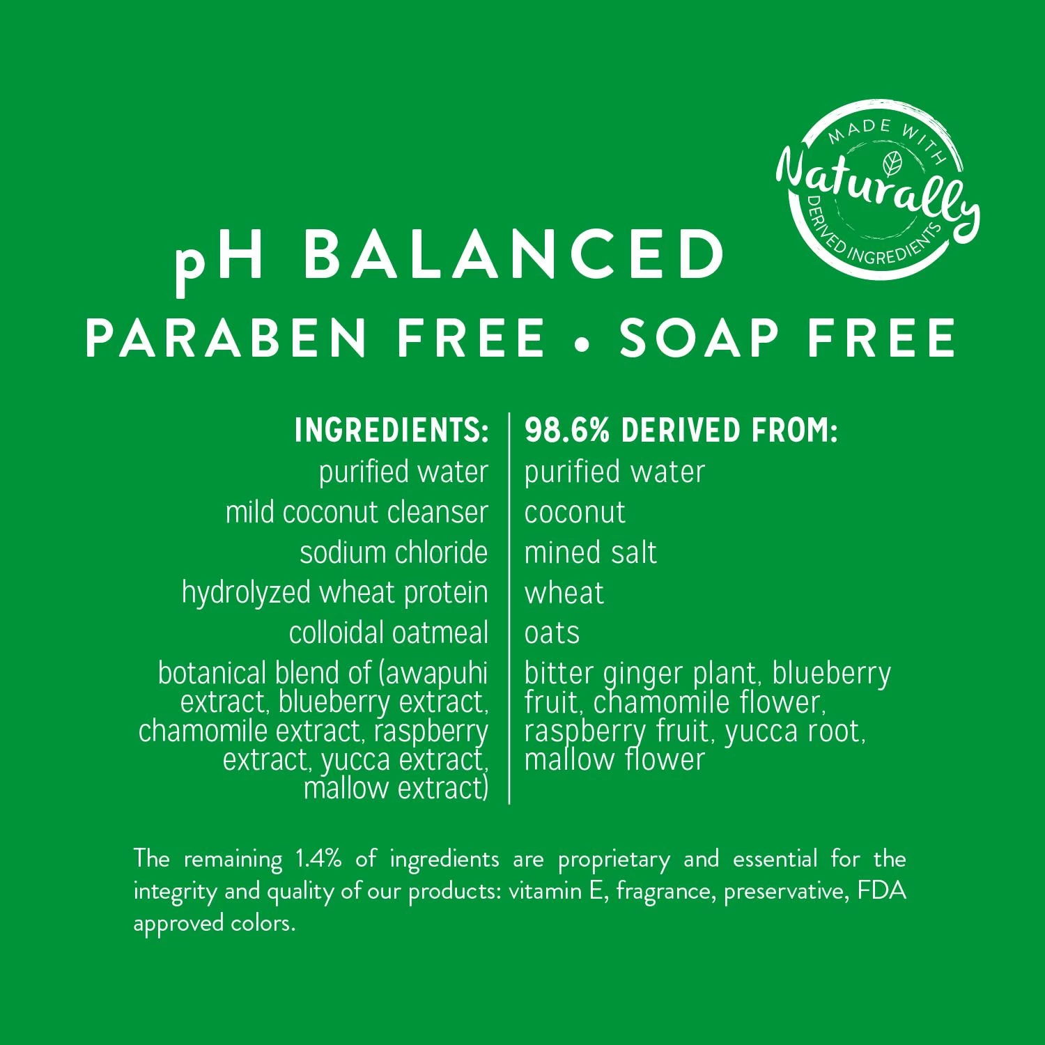 Purified Water Mild Coconut Cleanser Sodium Chloride Hydrolyzed Wheat Protein Colloidal Oatmeal Botanical Blend Of (Awapuhi Extract, Blueberry Extract, Chamomile Extract, Raspberry Extract, Yucca Extract, Mallow Extract)