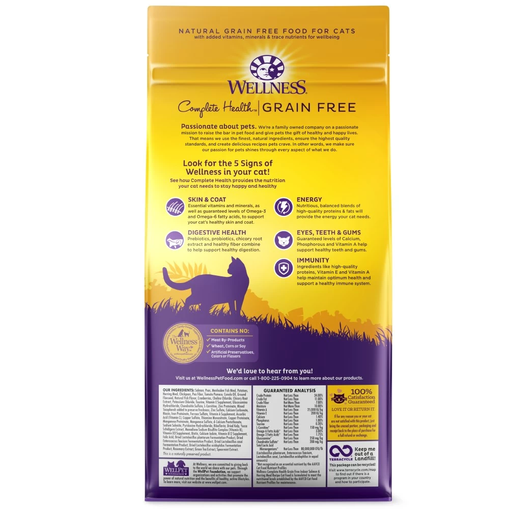 Wellness Complete Health Grain Free Indoor Health Recipe features the right balance of protein & fat that cats crave. Healthy fiber and L-Carnitine help to support cats with a less active lifestyle. This delicious recipe is formulated with a balanced blend of Omega Fatty Acids, vitamins & minerals to provide the energy your cat needs to thrive.