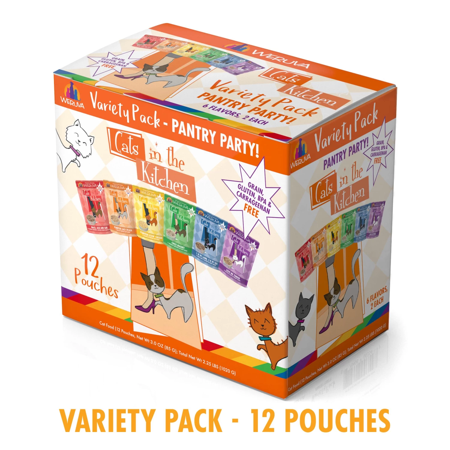 It’s paw-ty time! Fill up your pantry with the Pantry Party Pouch Variety Pack! Your funky feline will party on with two pouches of each of their favorite Cats in the Kitchen formulas: Mack, Jack and Sam, Pumpkin Jack Splash, Pumpkin Lickin’ Chicken, Chick Magnet, 1 If By Land, 2 If By Sea, and Love me Tender!